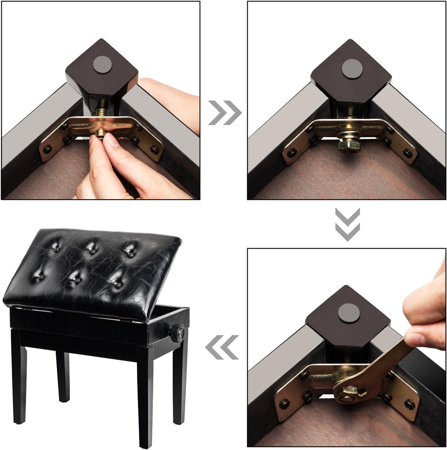 Assembly of your Bonnlo piano bench is straightforward. All necessary tools and hardware are included.