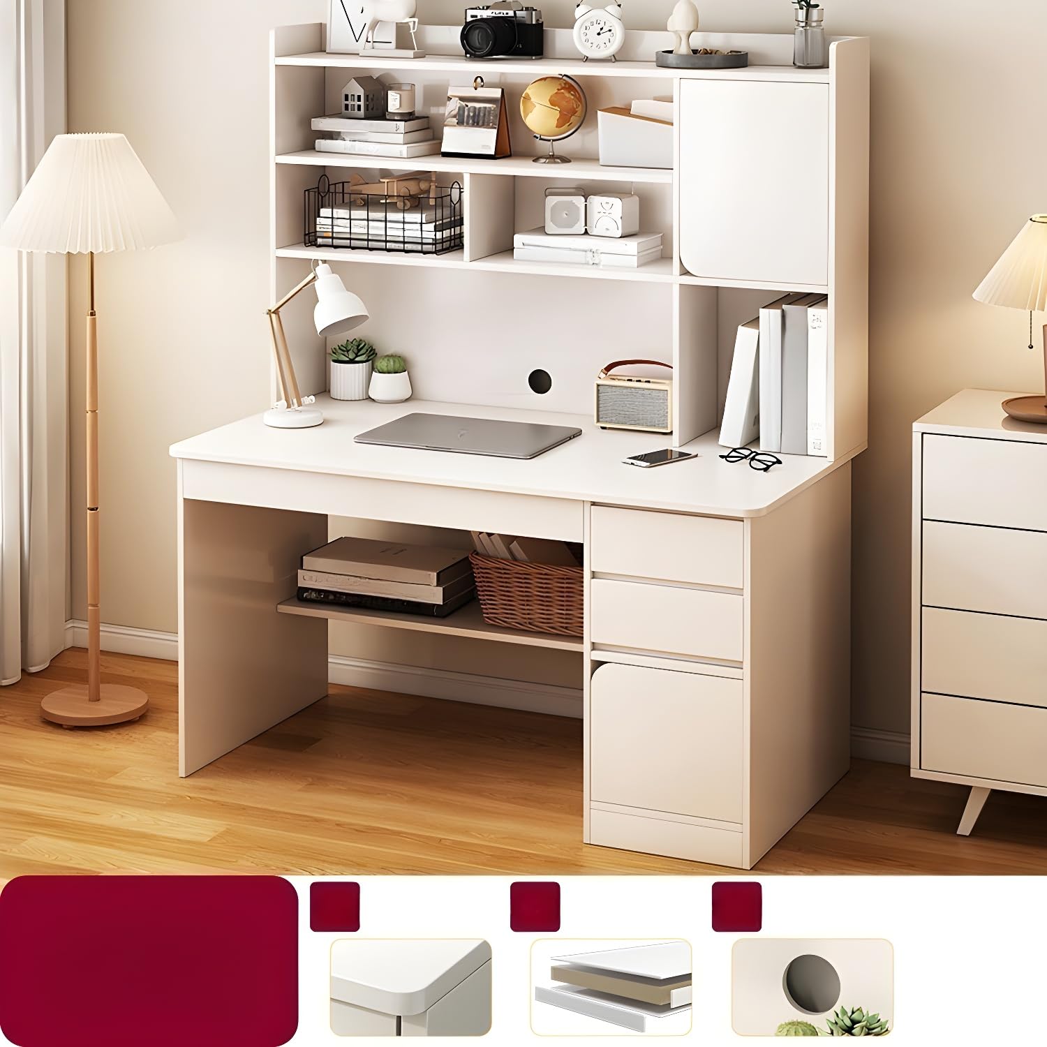 The LITFAD Credenza Desk is designed for versatile use in a home office, study, or bedroom. Its features include:
